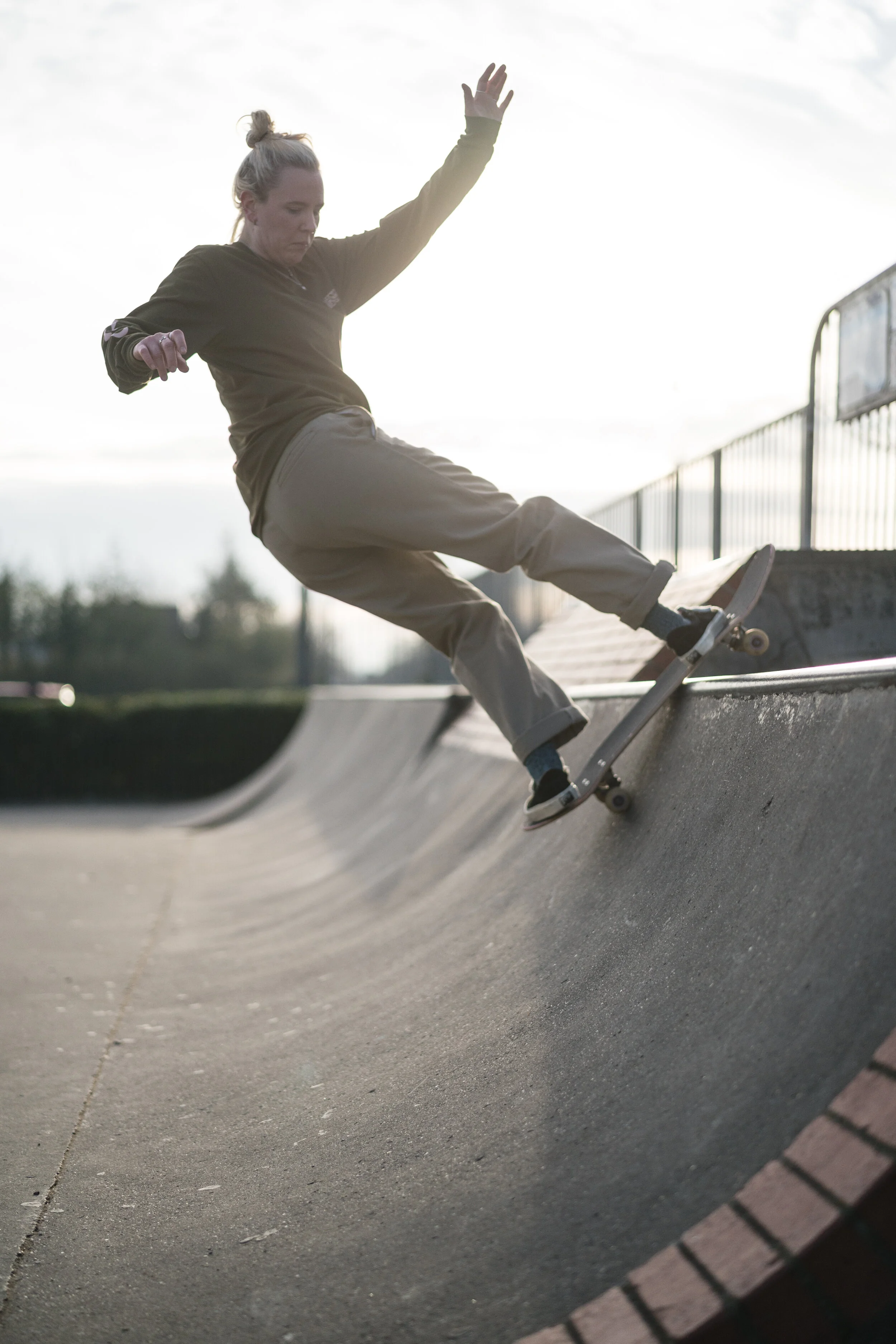 As with skating, I’d resigned myself to never learning to surf because I felt like I was too old and too embarrassed to be a learner. There’s something so supportive and inspiring about learning in an all-female environment, it feels like there’s less internal pressure to hide your weaknesses and struggles, less fear about messing up and not being perfect. Sally is always there to share in the stoke about catching a wave or to give you a little piece of advice or make an observation that can help you to improve. Despite all the similarities and differences between skating and surfing, the one thing that really binds them together for me is the rush you get whether you’re dropping into a concrete ramp or a wave, learning a new trick or riding a wave just that little bit longer than you did the last time. I really love being in the water and there’s definitely something special about the North Sea.