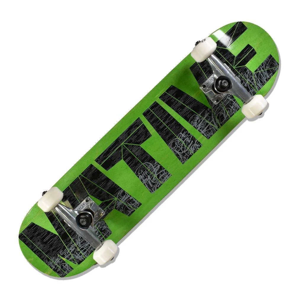 Seven ply Canadian Maple, pressed and glued together to make a strong wooden board with ‘pop’, that is a stiffness that allows the board to feel lively under foot, particularly when performing Ollies or other tricks where the board ‘pops’ off the floor into the air.