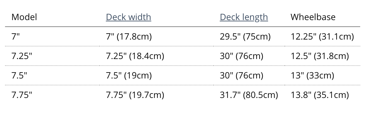 Boards come in different lengths, widths, wheelbases and amounts of concave. Most skaters don’t concern themselves too much with these details and focus instead on the width mainly and the companies they like. For a kid however, the other stuff is quite important.